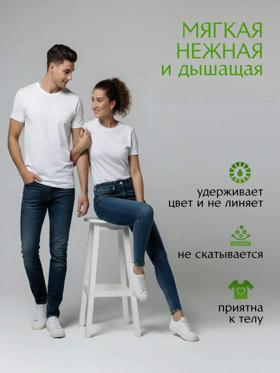 Футболка женская — удачный подарок женщине на 8 марта, подарок женщине на день рождения, а также подарок на 14 февраля (день святого Валентина). Такая белая футболка уместна и как подарок на 23 февраля для пары в стиле family look. Универсальные женские размеры, комфортная горловина и аккуратные швы — для длительной носки и стабильной посадки после стирки.