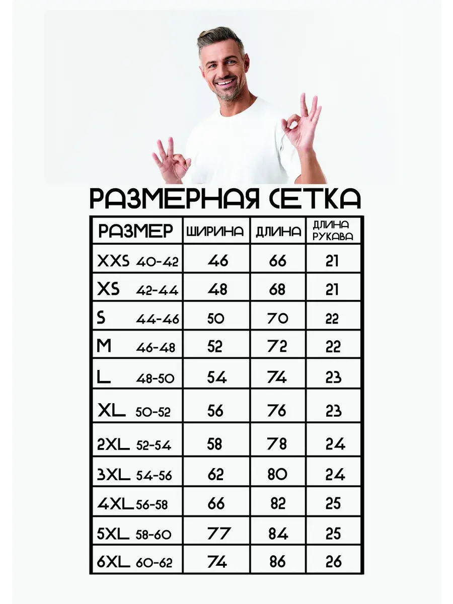 Размерный ряд от 42 (XS) до 60 (6XL) размера.