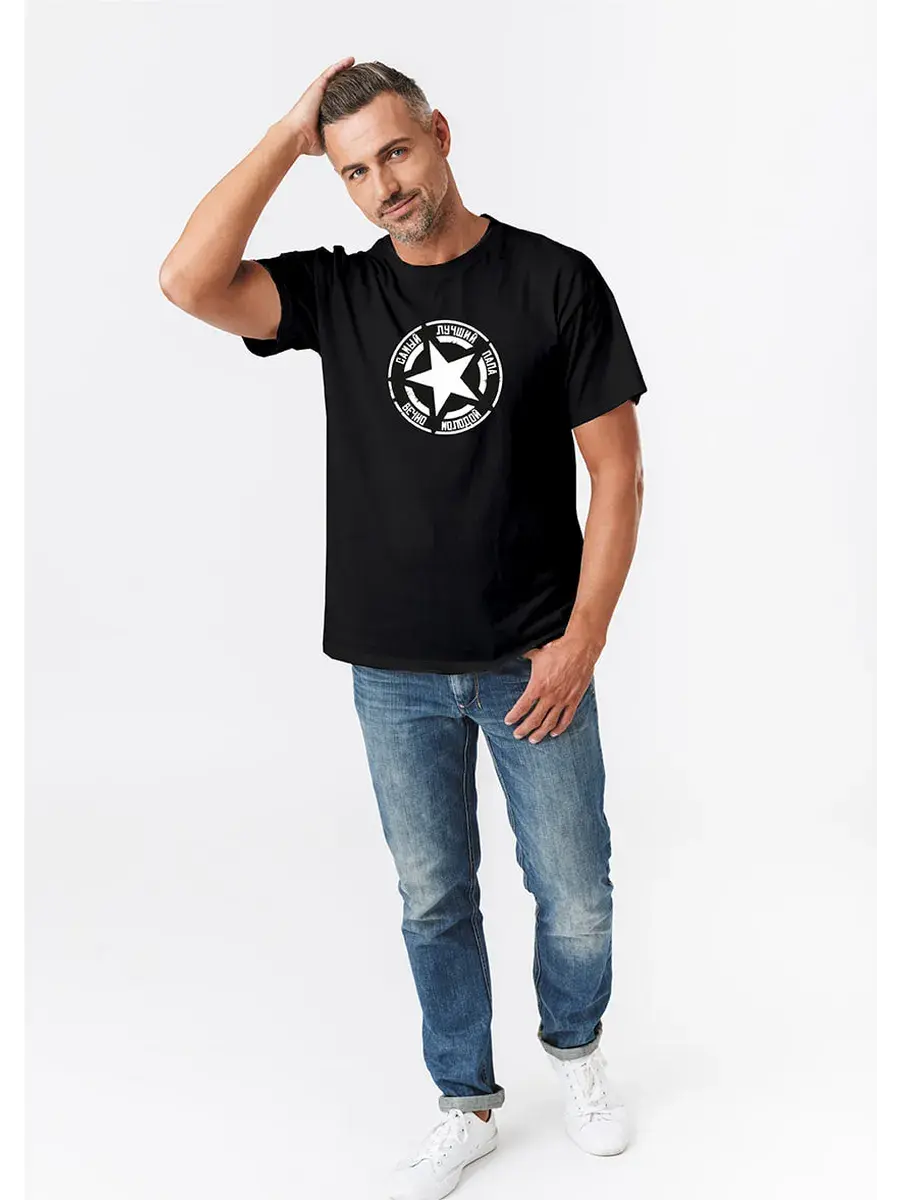 Футболка с принтом Самый лучший папа вечно молодой от набирающего популярность бренда одежды SEZON-PRINTOV