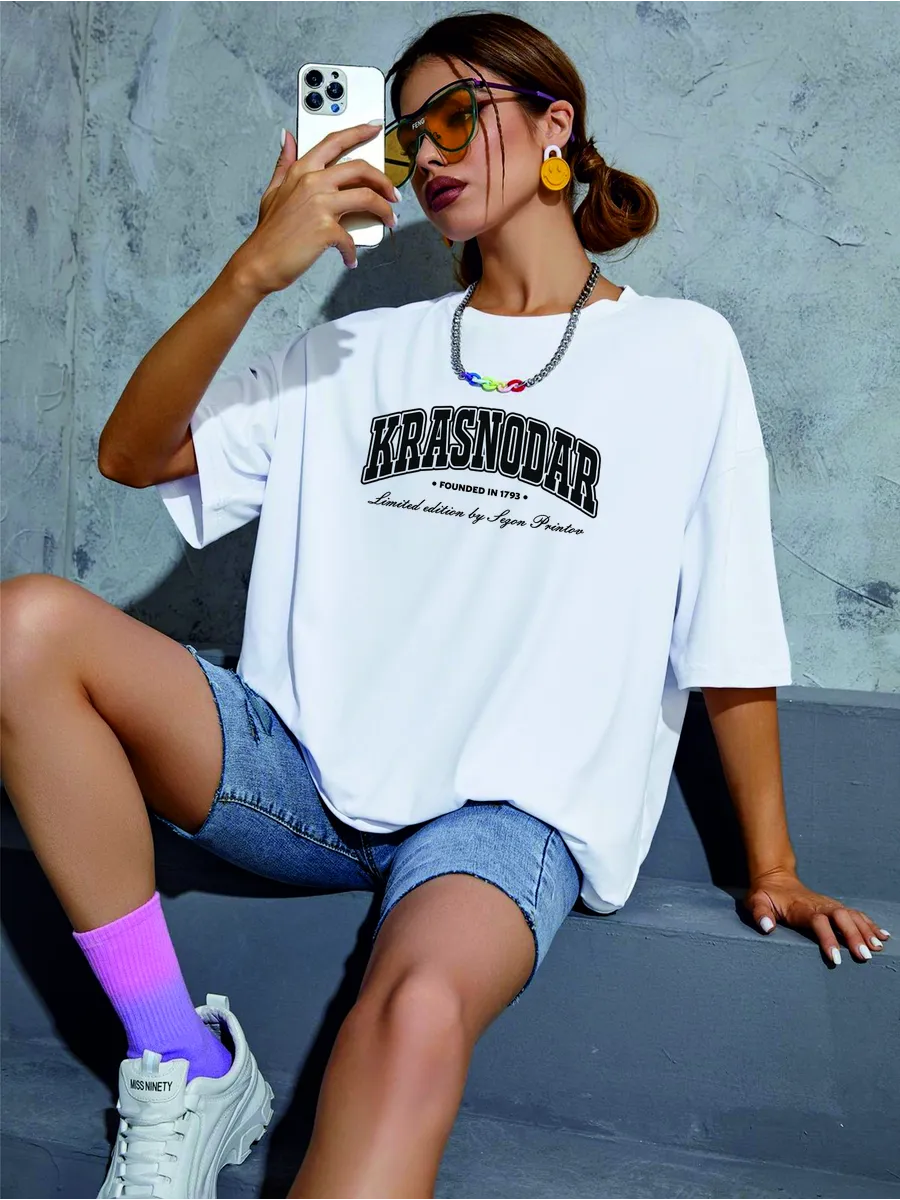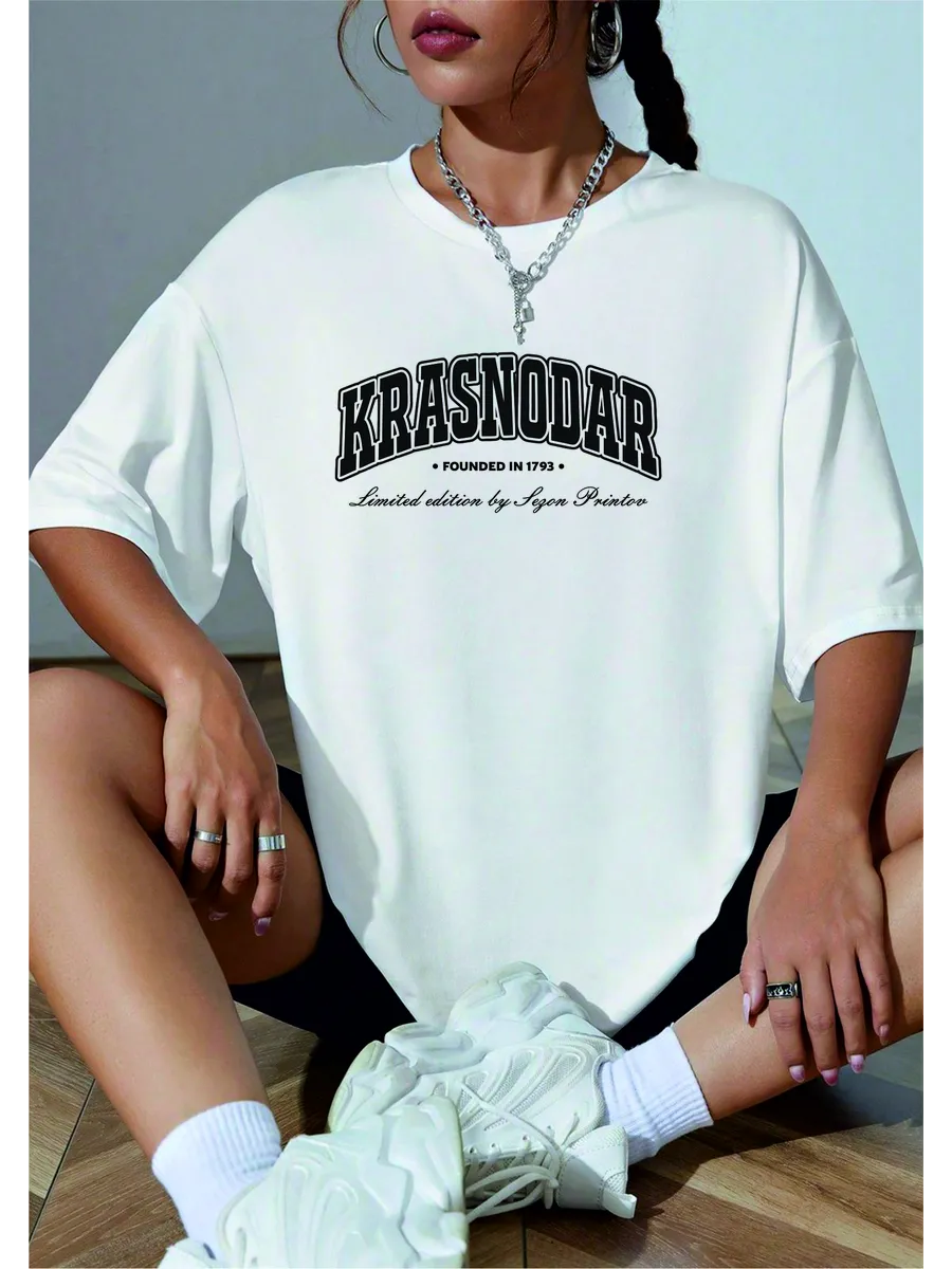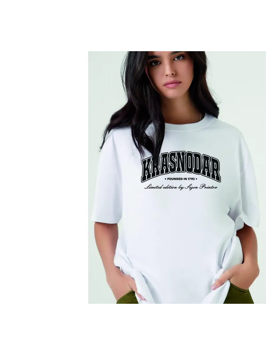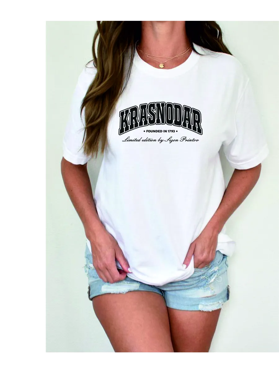 Футболка с надписью Краснодар добавляет образу индивидуальности и соответствует актуальным трендам.