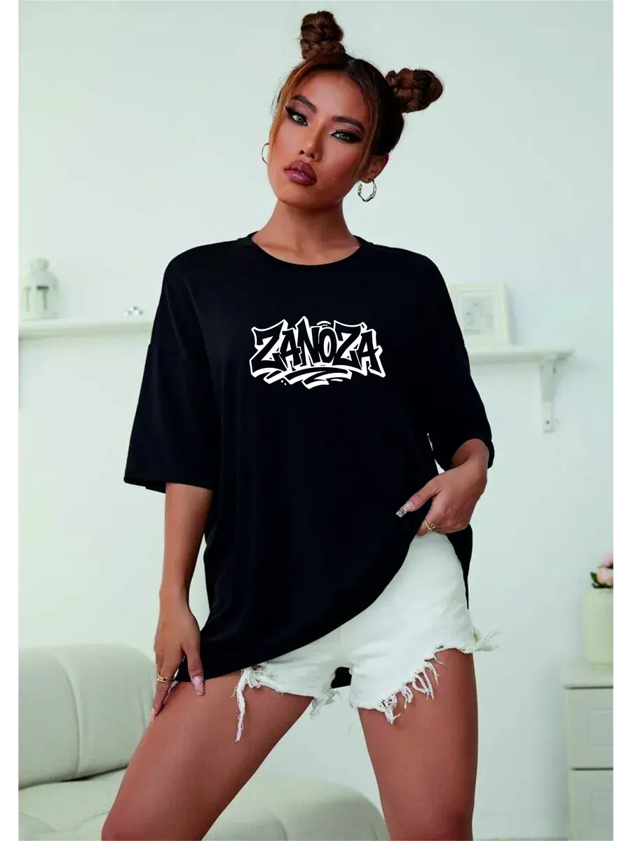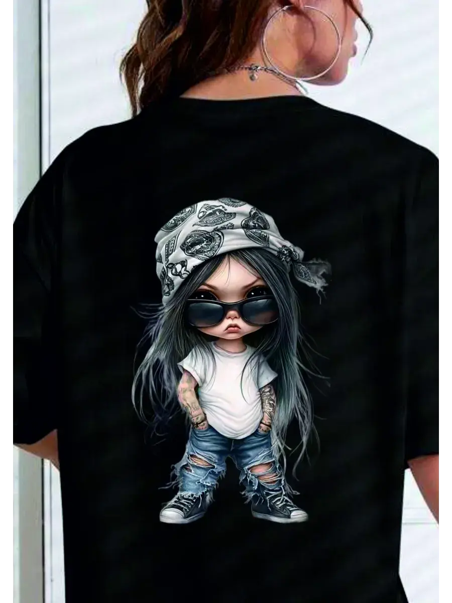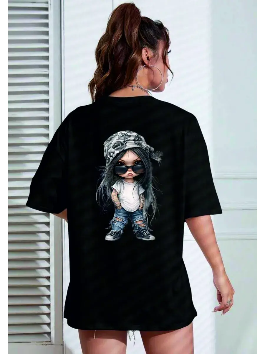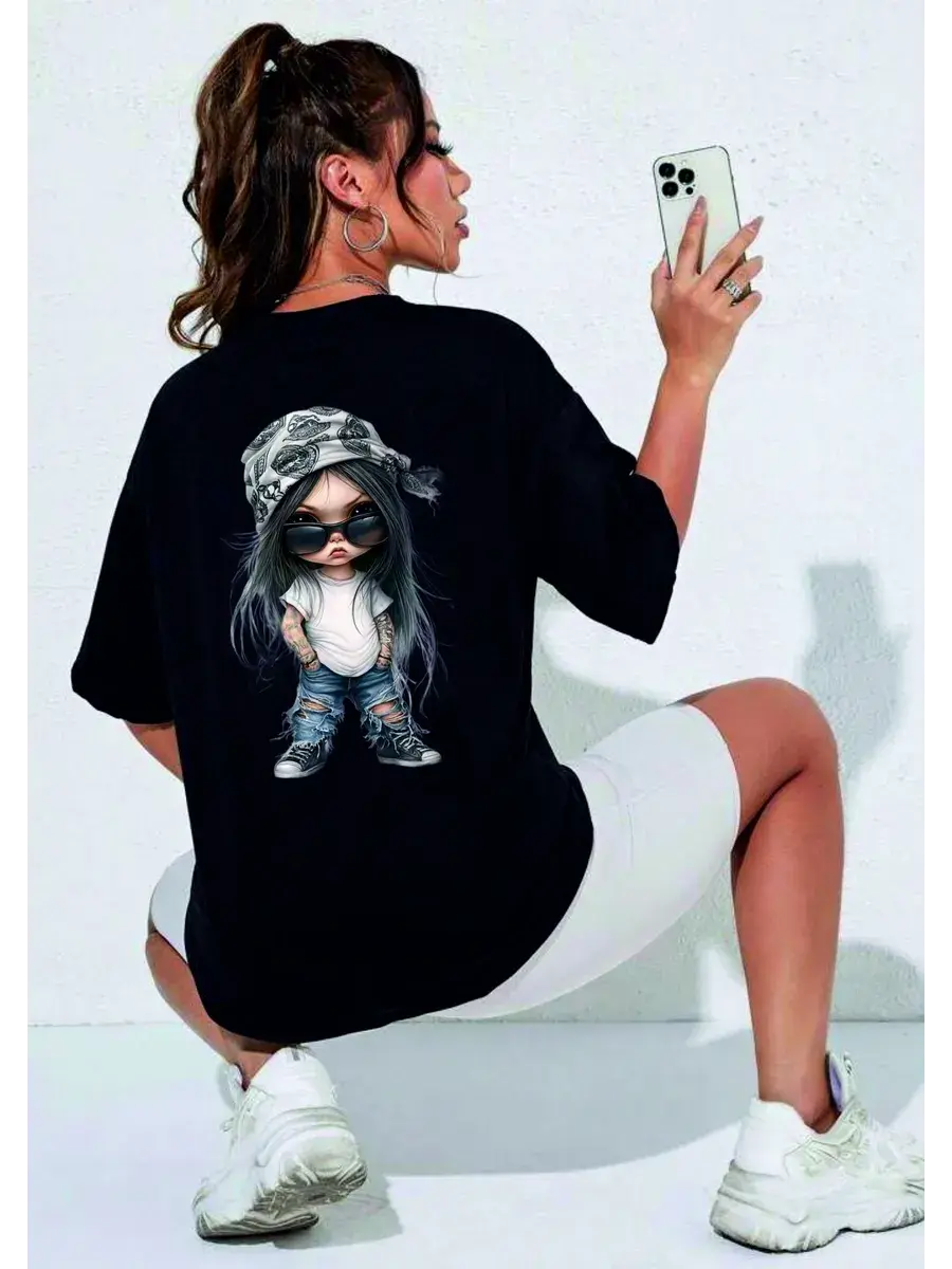Футболка оверсайз с принтом Девочка заноза - это модная и стильная одежда, которая подойдет для создания яркого и запоминающегося образа. Футболка выполнена в черном цвете, что делает ее универсальной и подходящей для различных стилей одежды.