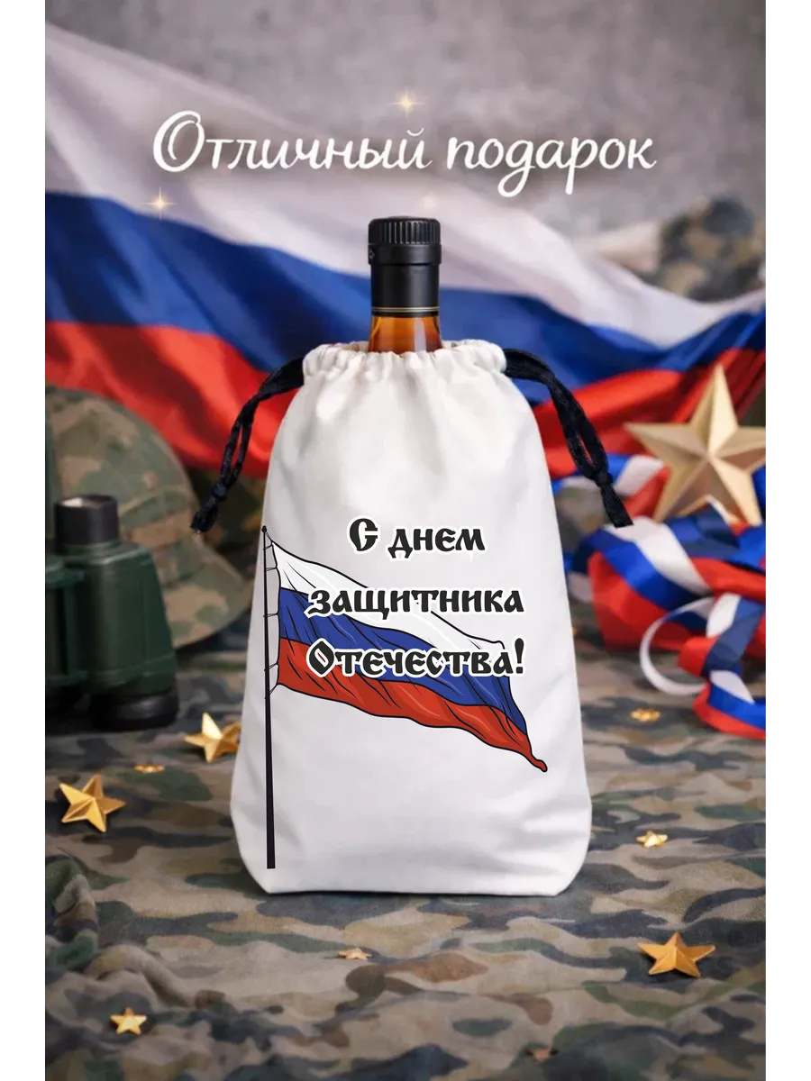 Подарочный мешок для коньяка с надписью С днем защитника отечества